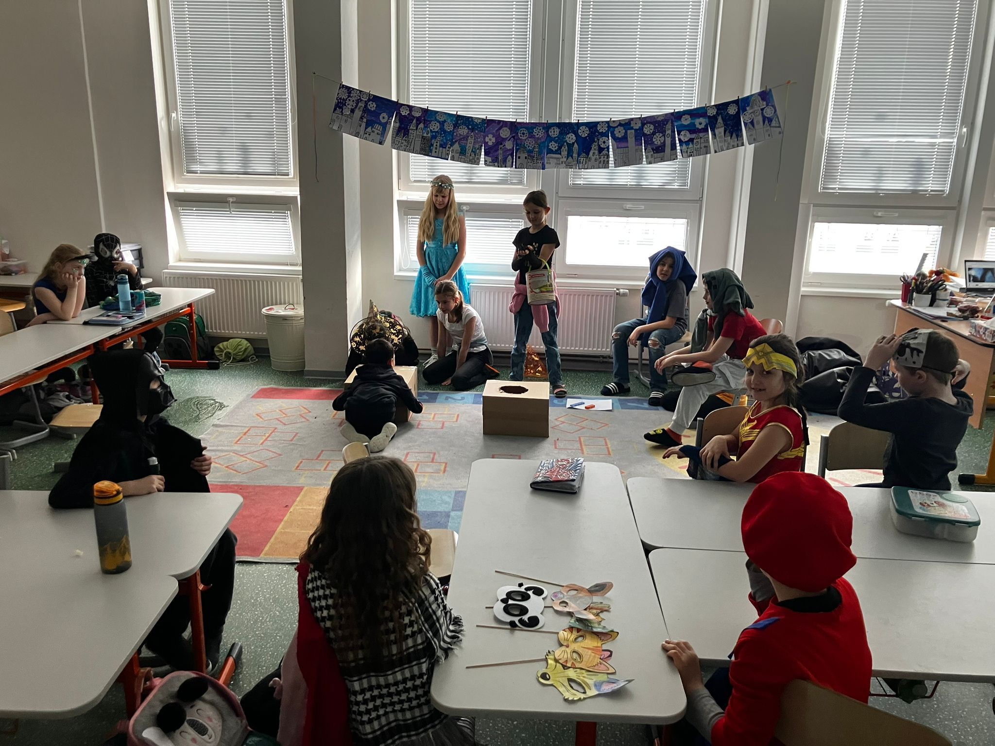 a) Relaxace, četba, odpočinek na koberci, klidové hry, vyprávění - dialog s dětmi.