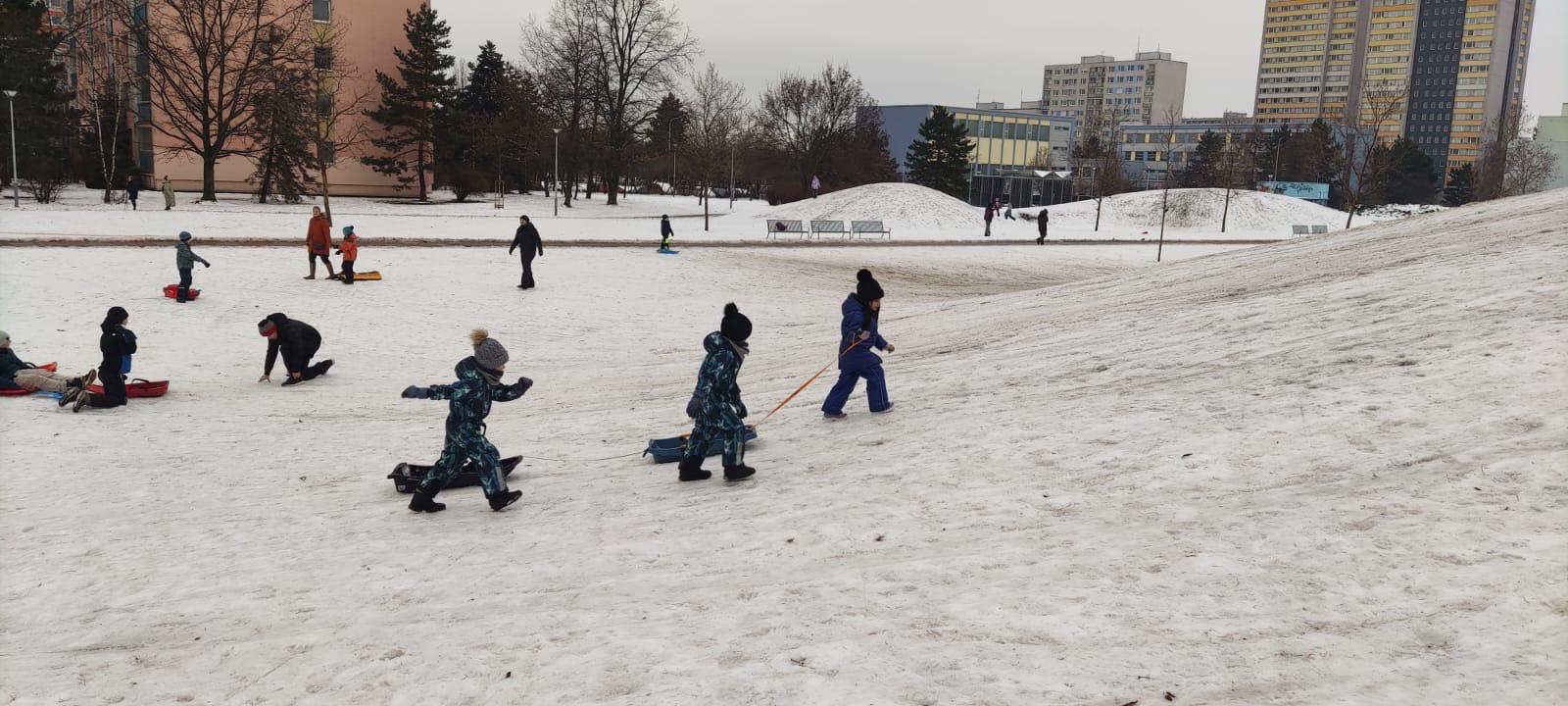 Venku: vycházky po okolí, pobyt na veřejném dětském hřišti, pobyt na školní zahradě – péče o květiny, individuální činnosti dle potřeb každého dítěte. Vycházky do lesoparku – pozorování přírody.