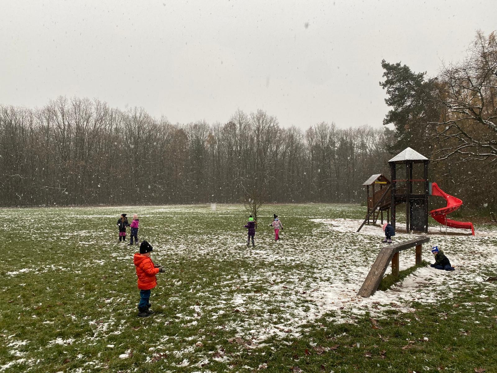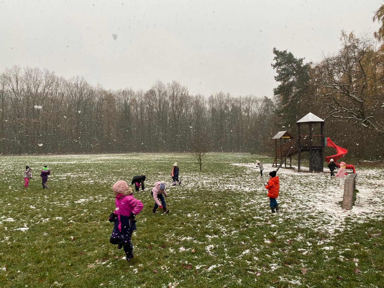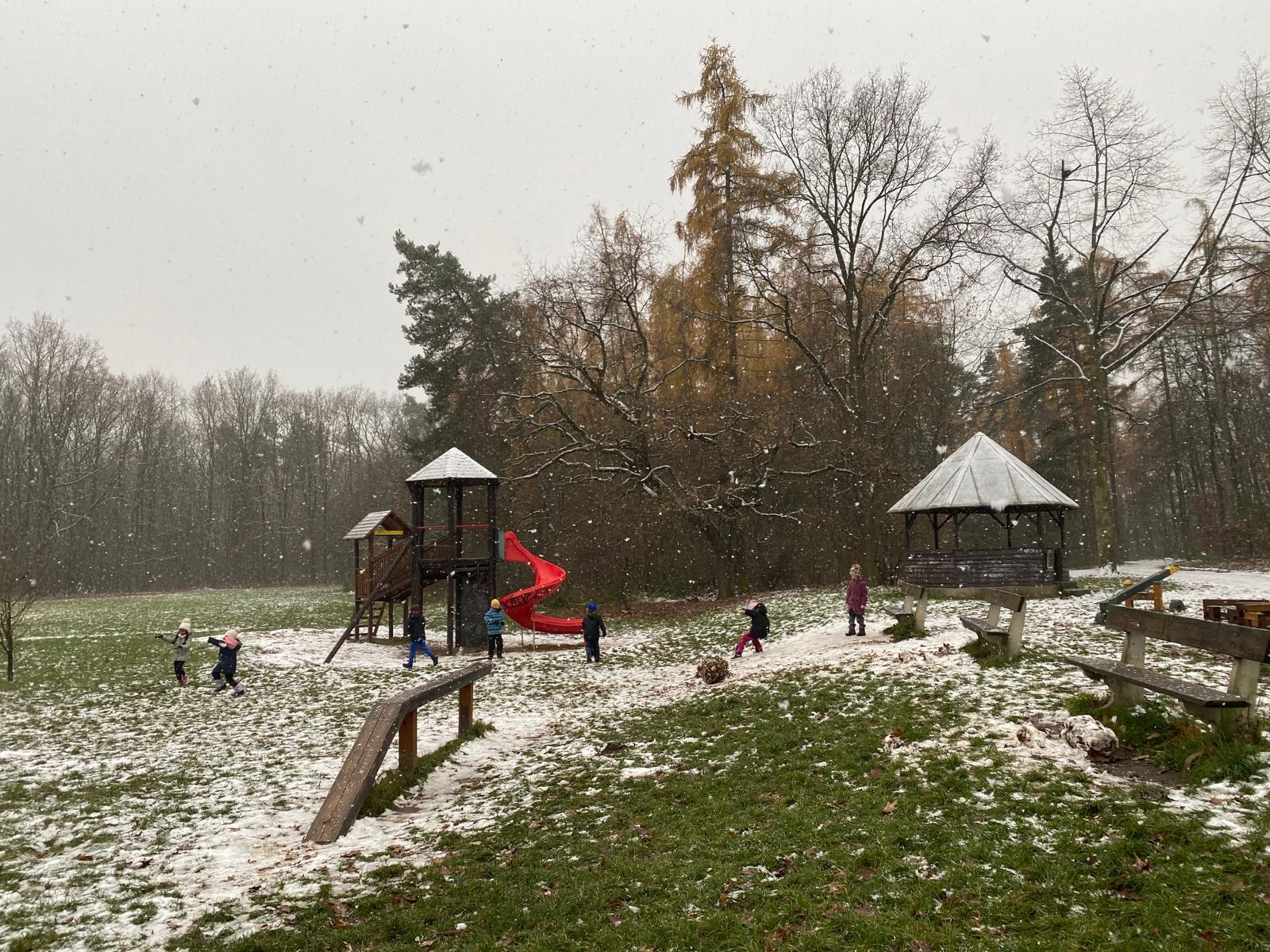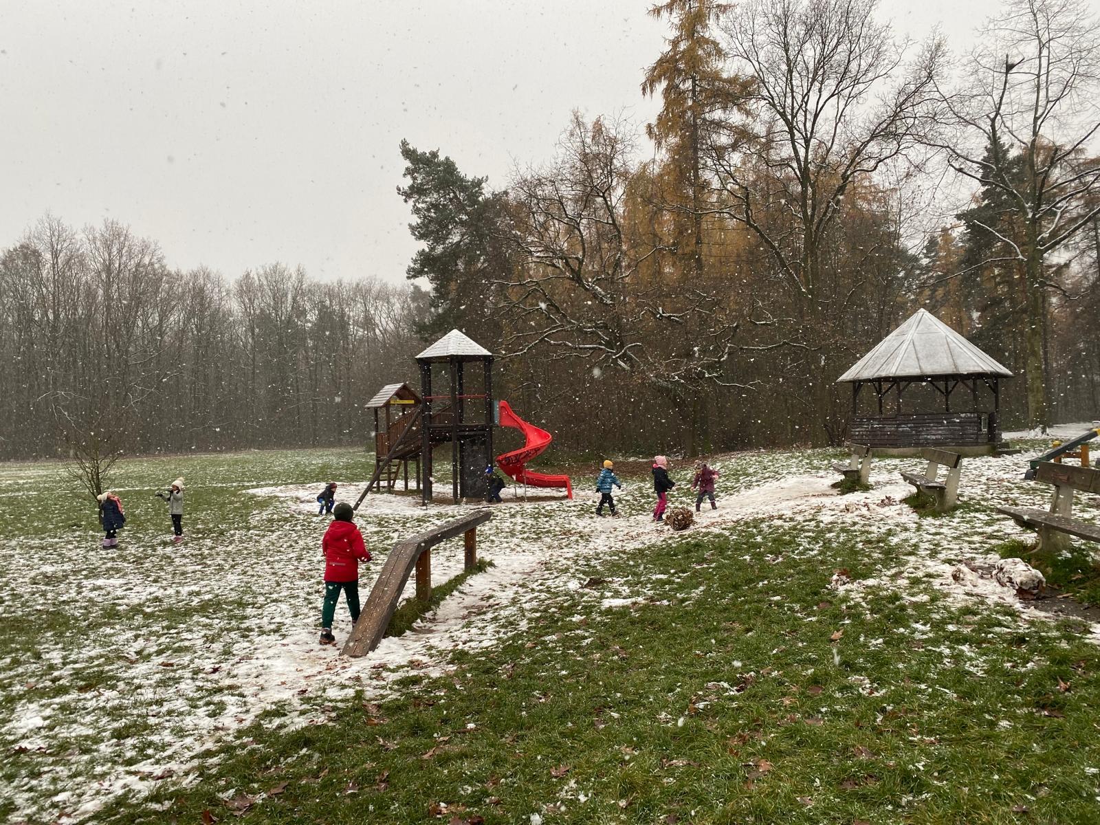 Venku: vycházky po okolí, pobyt na veřejném dětském hřišti, pobyt na školní zahradě – péče o květiny, individuální činnosti dle potřeb každého dítěte. Vycházky do lesoparku – pozorování přírody.